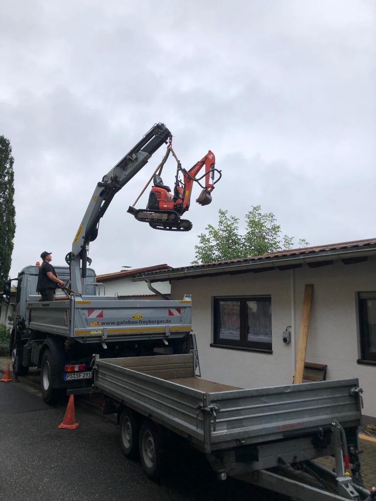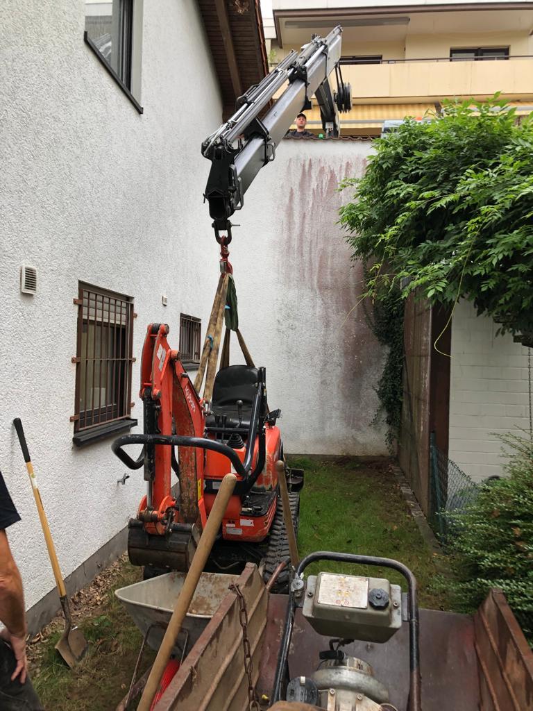 ■ Nach der Neuanschaffung eines weiteren firmeneignen LKW’s ist unsere Flexibilität und Leistungsstärke weiter gewachsen. Dank des neuen LKW’s mit Kranaufbau ist es möglich, den Minibagger auch über Mauern und Zäune zu heben, was für viele Grundbesitzer neue Perspektiven in der Landschaftsgestaltung eröffnet.
